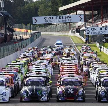 All the Fun Cup cars are the same: a tubular frame chassis with a 2L engine and the look of the famous ‘Beetle’.